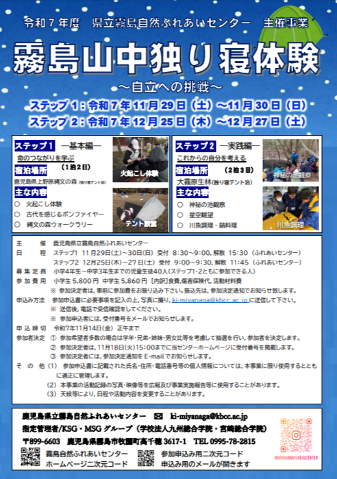 ※ メール送信後,必ずセンターに電話連絡をし,申込みメールがセンターに届いているかをご確認ください。☎:0995-78-2815